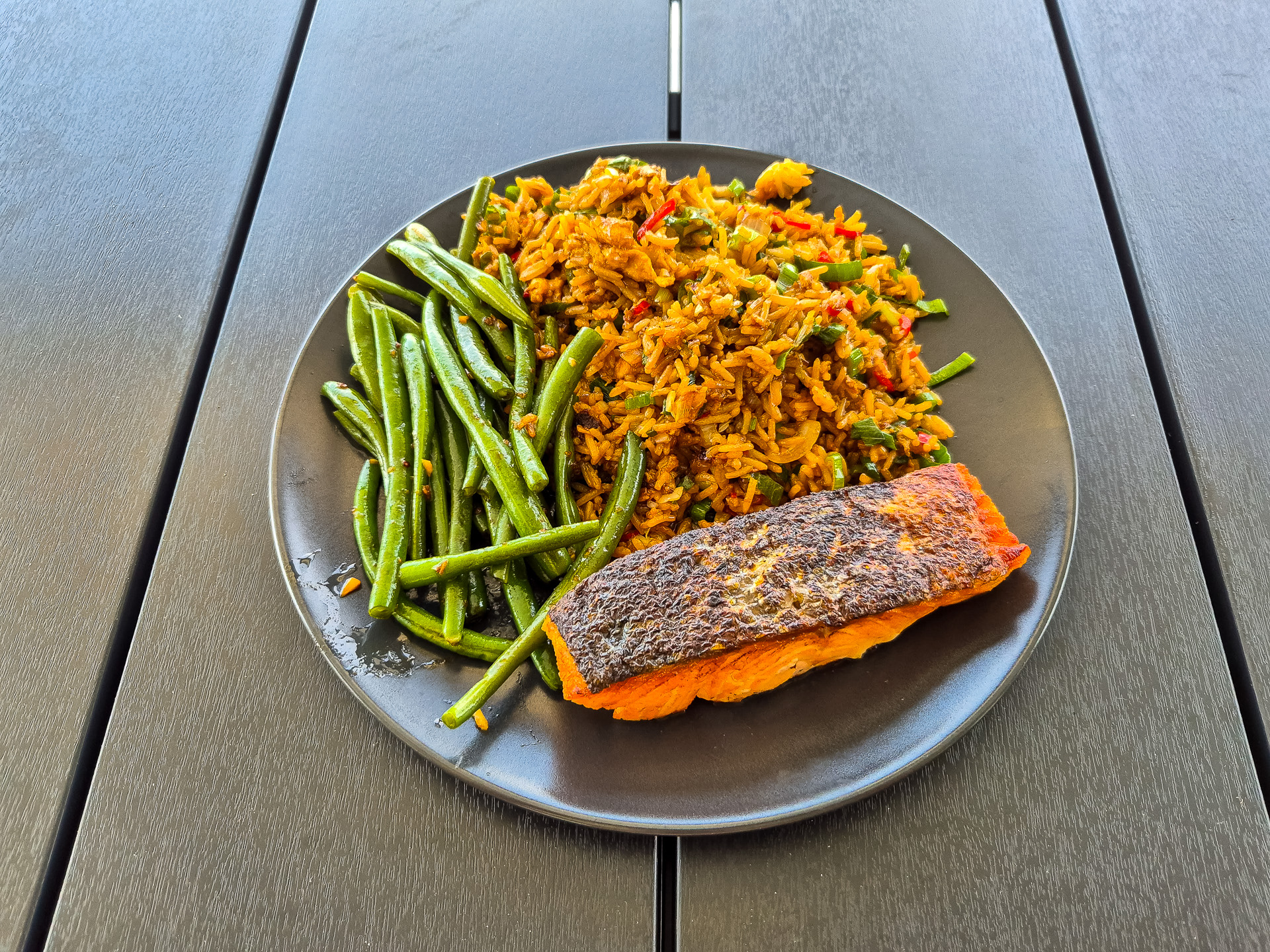 - 100 g surovega basmati riža (kuhan en dan prej in ohlajen)