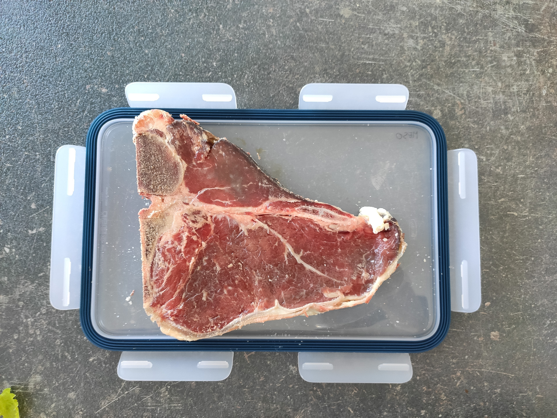 - en zorjen T-bone debeline 4cm (cca 800g skupaj s kostjo)